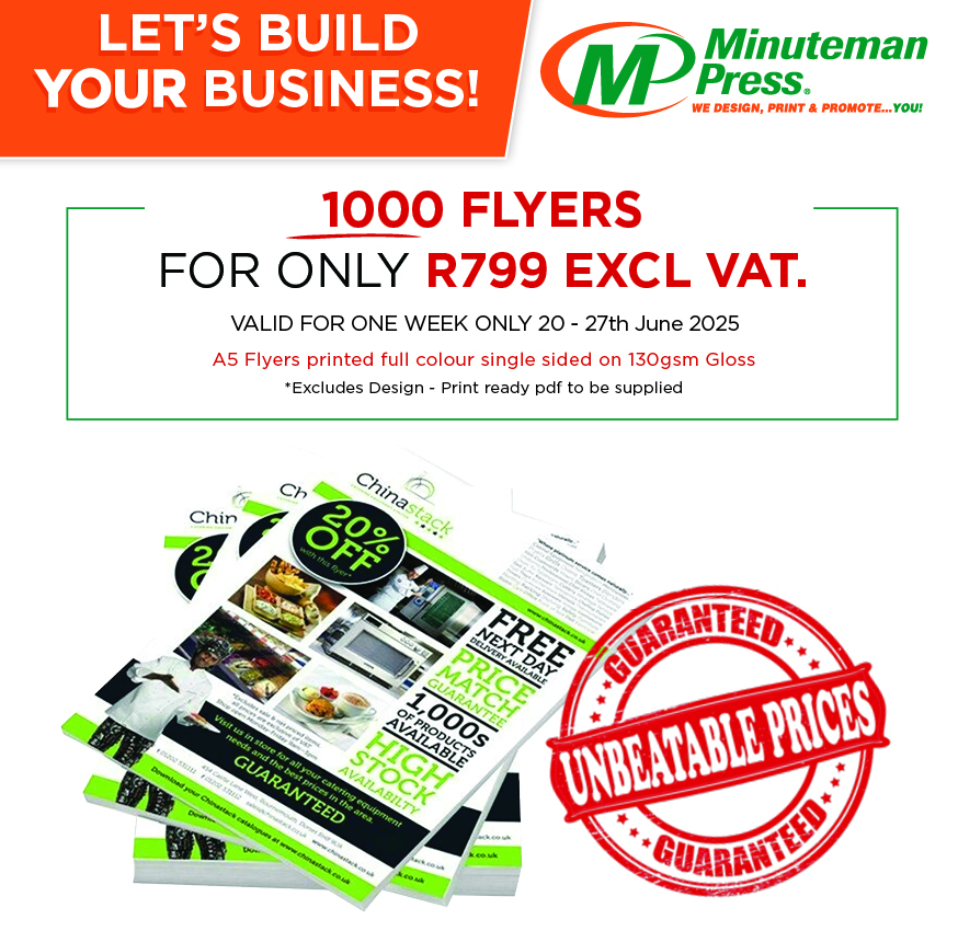 Order 1000 A5 Flyers printed full colour single sided on 130gsm Gloss